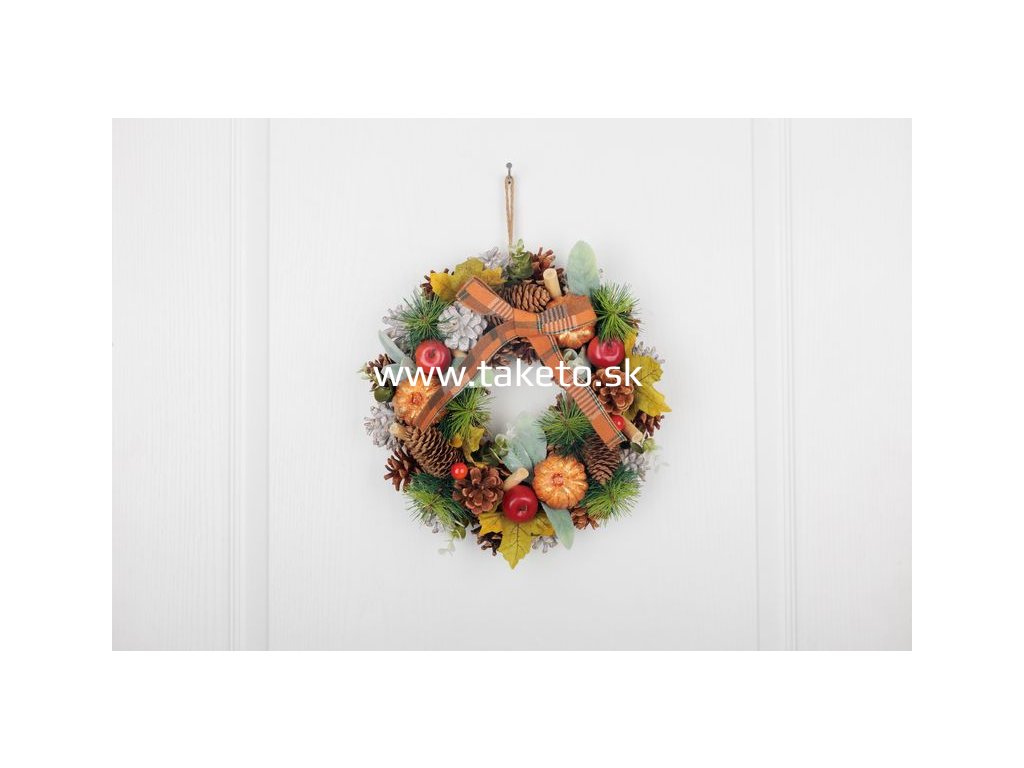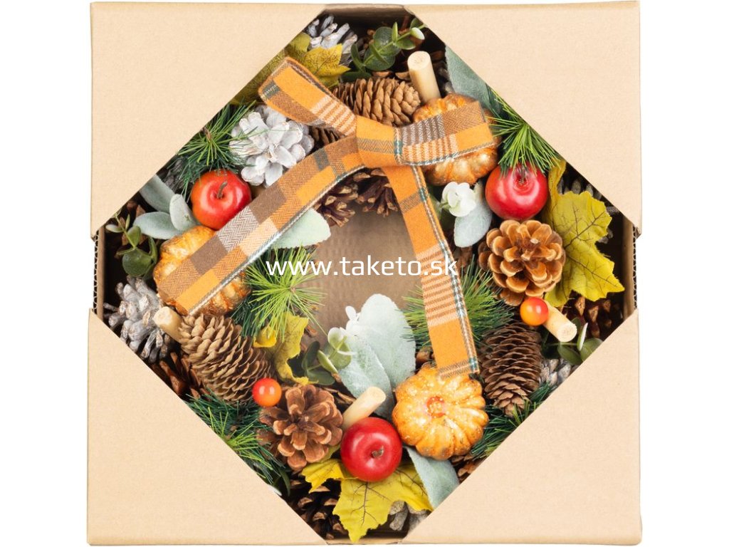 Veniec MagicHome Nature, jesenný, oranžový, s mašľou, 30 cm + praktický pomocník k objednávke