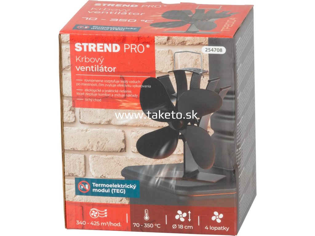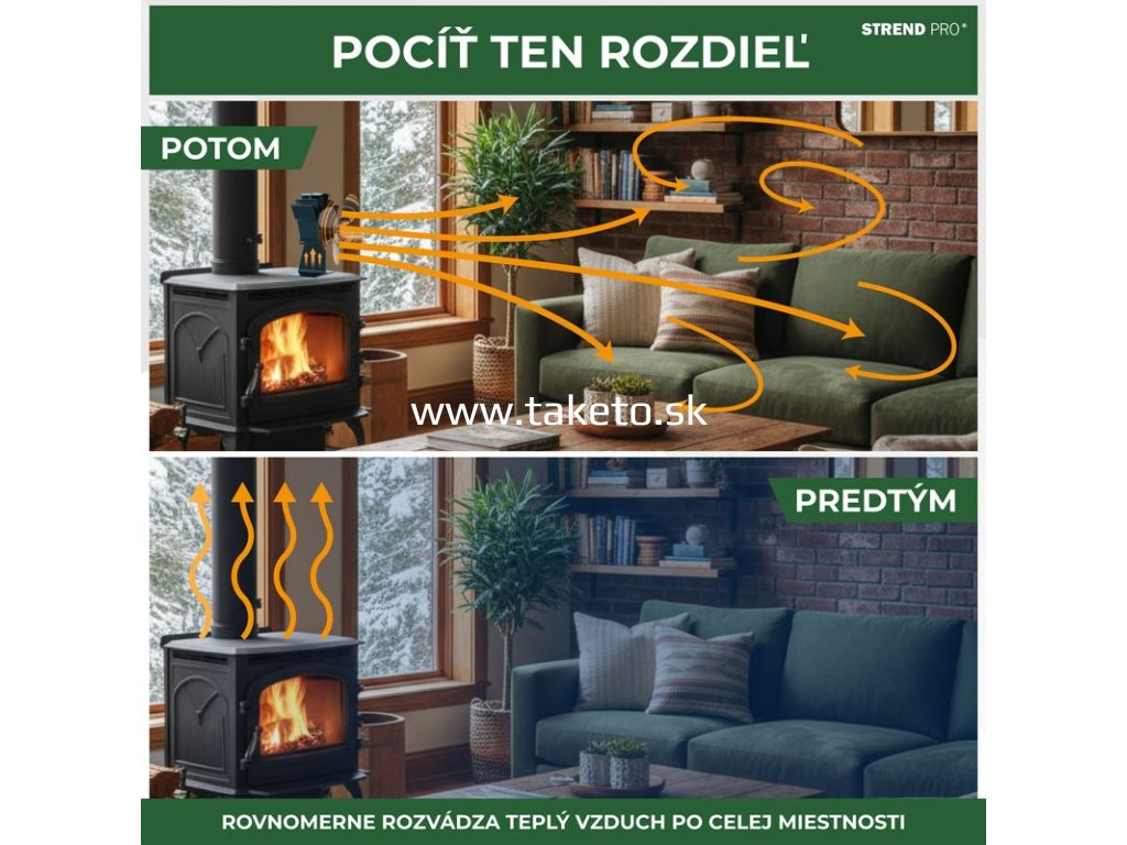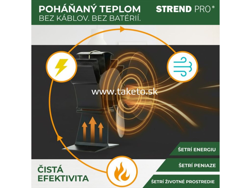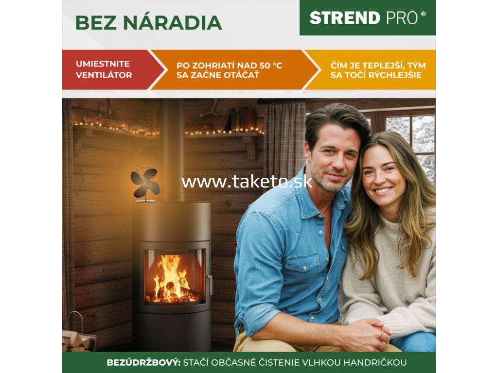 Ventilátor Strend Pro, krbový, stojanový, poháňaný teplom, 4-lopatkový, čierny + praktický pomocník k objednávke