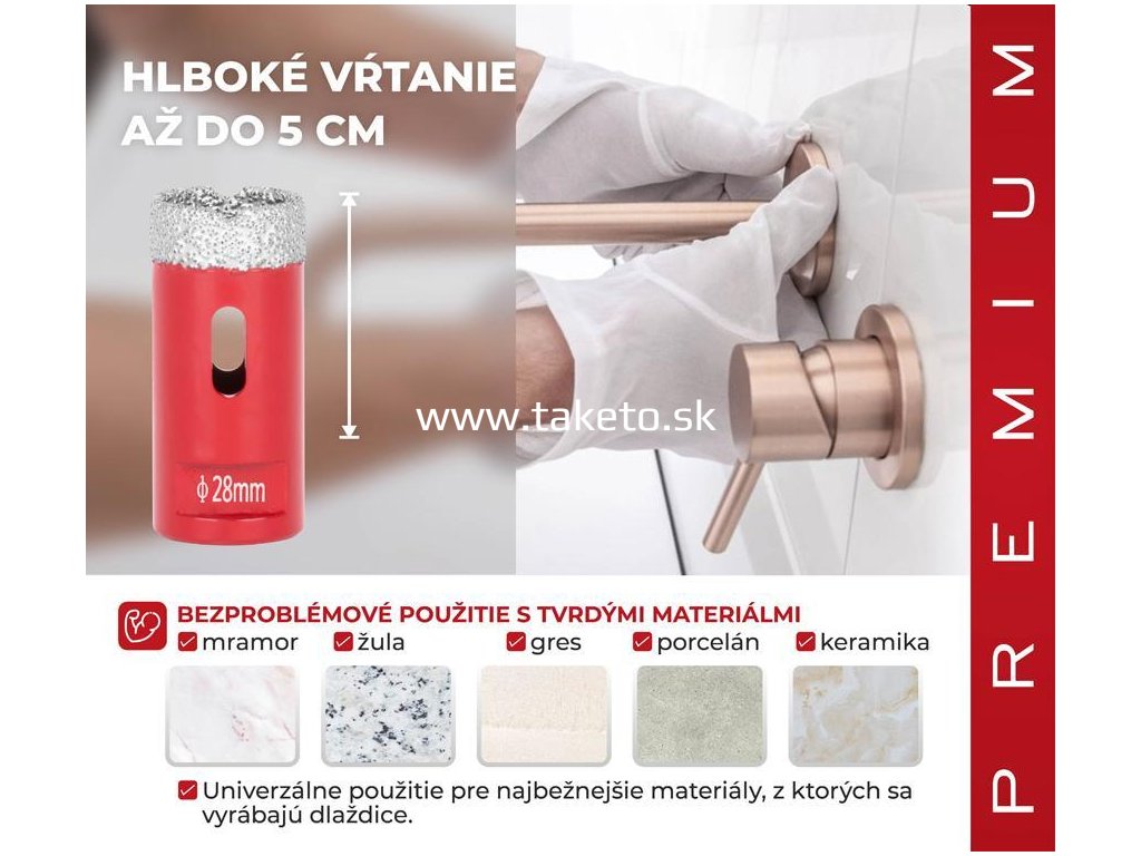 Vyrezávač Strend Pro Premium je vhodný na vyrezávanie všetkých druhov tvrdeného kameňa a jeho zlúčenín, keramických dlaždíc, mramoru, gresu, porcelánu a žuly. Špičkový proces spájania diamantov zabezpečuje vysokú odolnosť voči vysokým teplotám a predlžuje životnosť. Extrémne ľahké rezanie a vysoká výkonnosť pri vykružovaní. Perfektne ho využijete pri montáži kúpeľnovej sanity a príslušenstva, inštalácii káblov, elektrického vedenia, radiátorov atď. Je použiteľný s akoukoľvek vŕtačkou s použitím vhodného adaptéru. Typ upínania: M14, Ø vyrezávača je 28 mm.