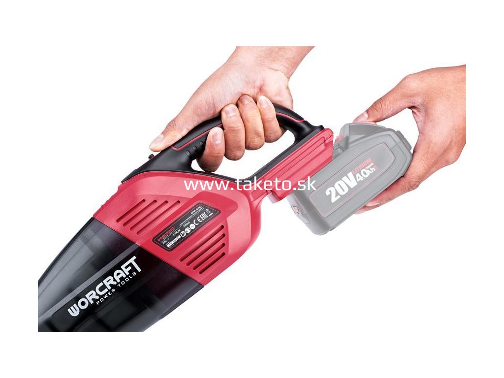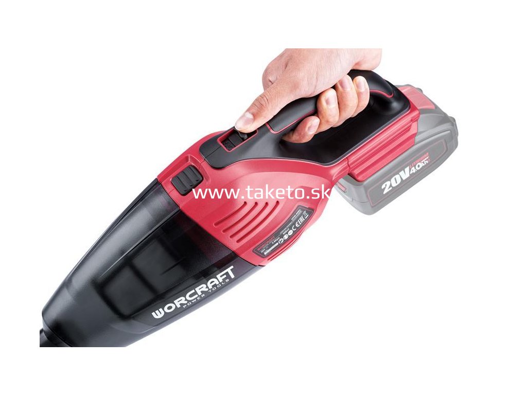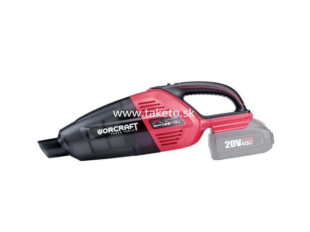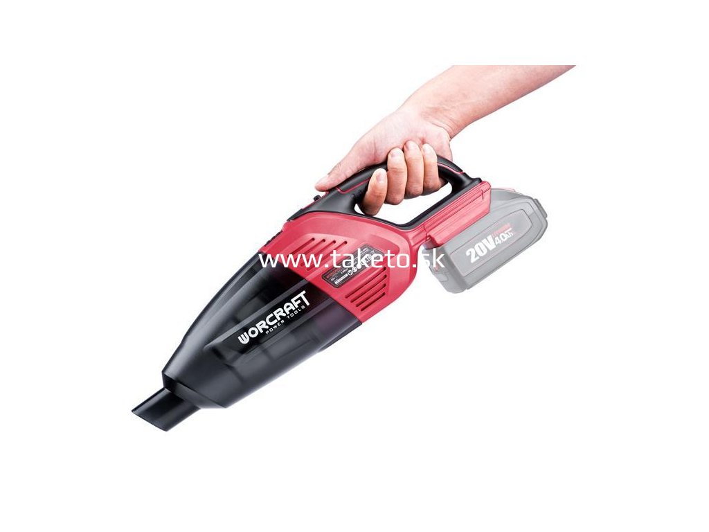 Akumulátorový prenosný vysávač Worcraft CPVC-S20Li je určený na vysávanie zdraviu neškodlivých suchých hmôt. Vysávač je určený výlučne na používanie v domácnosti. Odolná zberná nádoba disponuje objemom 500 ml. Výkonný vysávač poskytuje podtlak => 3,8 kPa. Je vybavený textilným filtrom a prekvapí svojou nízkou hmotnosťou. Zapína a vypína sa jednoducho, pomocou ON/ OFF tlačidla. Uvoľňovacie tlačidlo slúži na uvoľnenie zbernej nádoby. Bežný čas nabíjania batérie je cca 1 – 1,5 hodiny. Batéria je tepelnou poistkou chránená proti prebitiu, preto môže v nabíjačke zostať dlhší čas bez poškodenia (však, nie dlhšie ako 24 hodín).