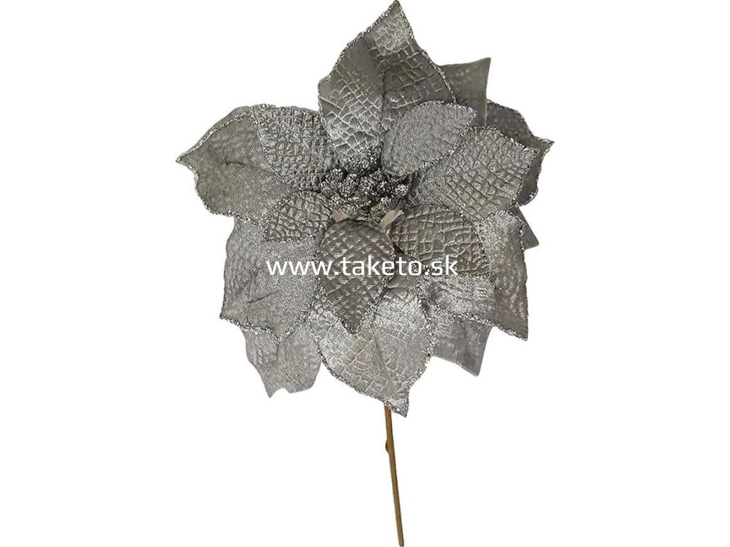 X Kvet MagicHome Vianoce, Poinssetia, strieborná, stonka, veľkosť kvetu: 35 cm + praktický pomocník k objednávke